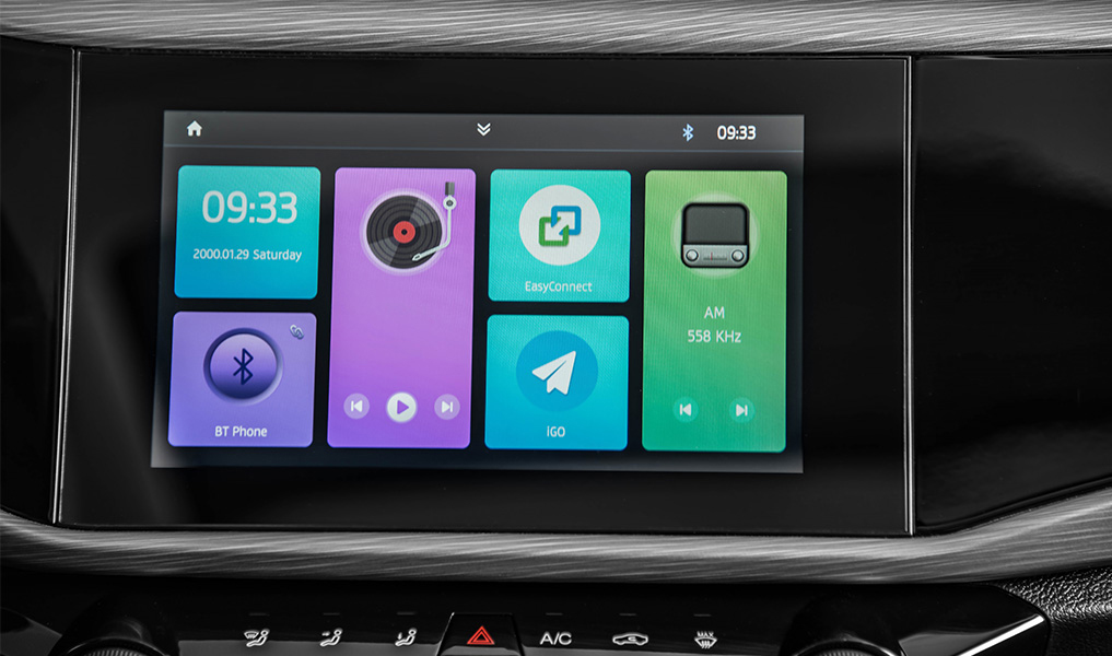 At the dashboard center, the vibrant 8-Inch touchscreen controls multimedia, Bluetooth, navigation (if available), and smartphone integration with Apple CarPlay and Android Auto.